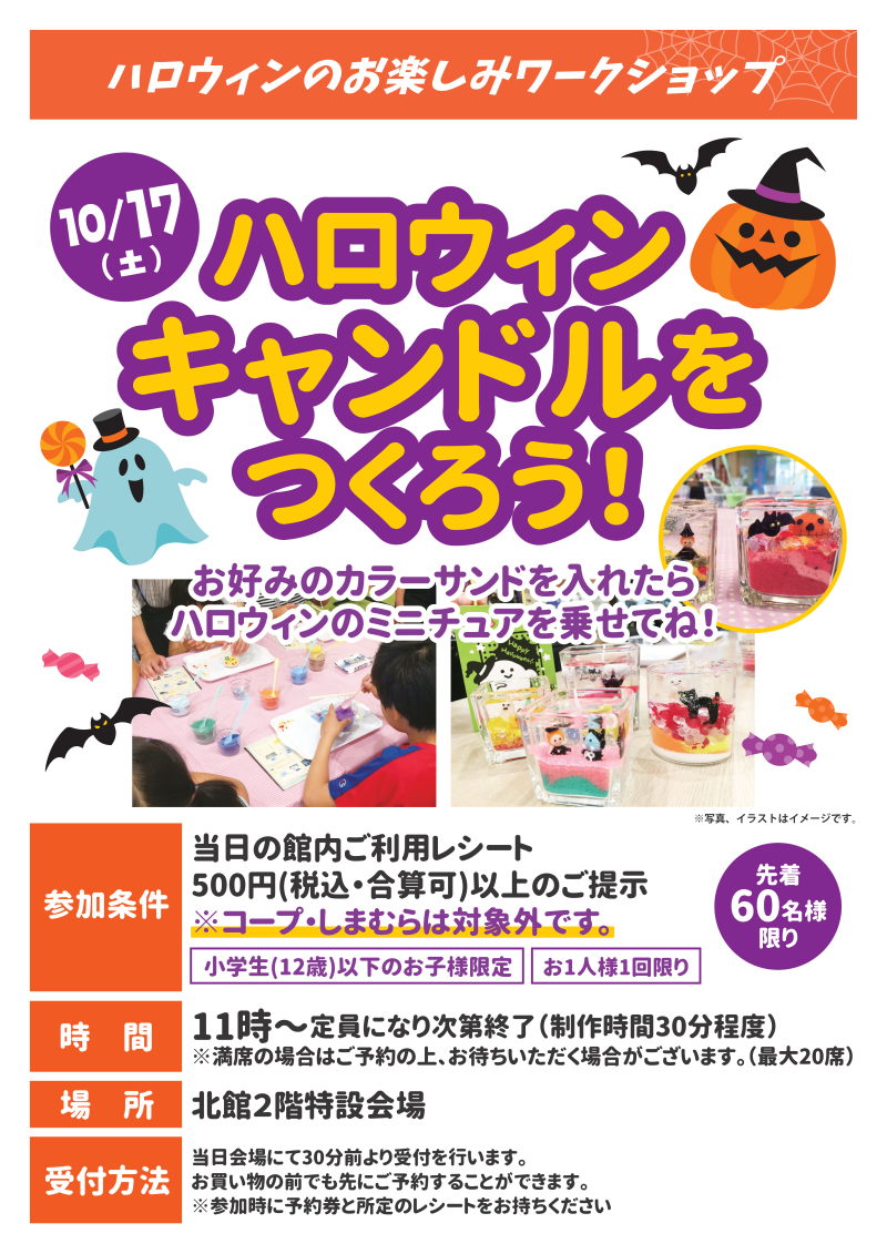 10月17日(土曜日)に、ハロウィンのお楽しみワークショップ『ハロウィンキャンドルをつくろう!』を開催します。
