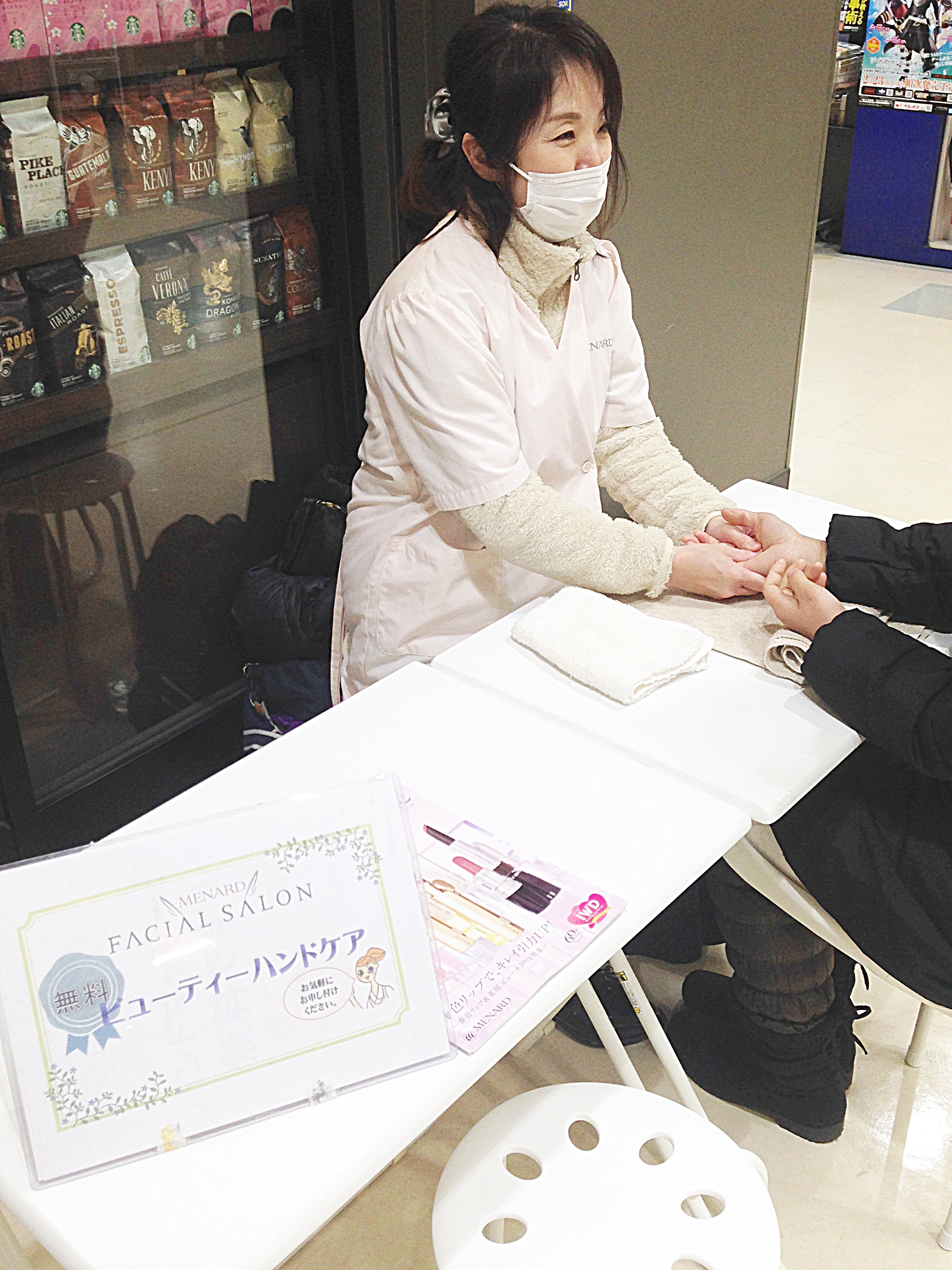 こんな寒く冷え切った日には特に好評のハンドケアですが、帰りがけに「ほら、こんなにすべすべにしてもらったよ。」と声をかけてもらいました!ご利用いただいた皆様、ありがとうございました!